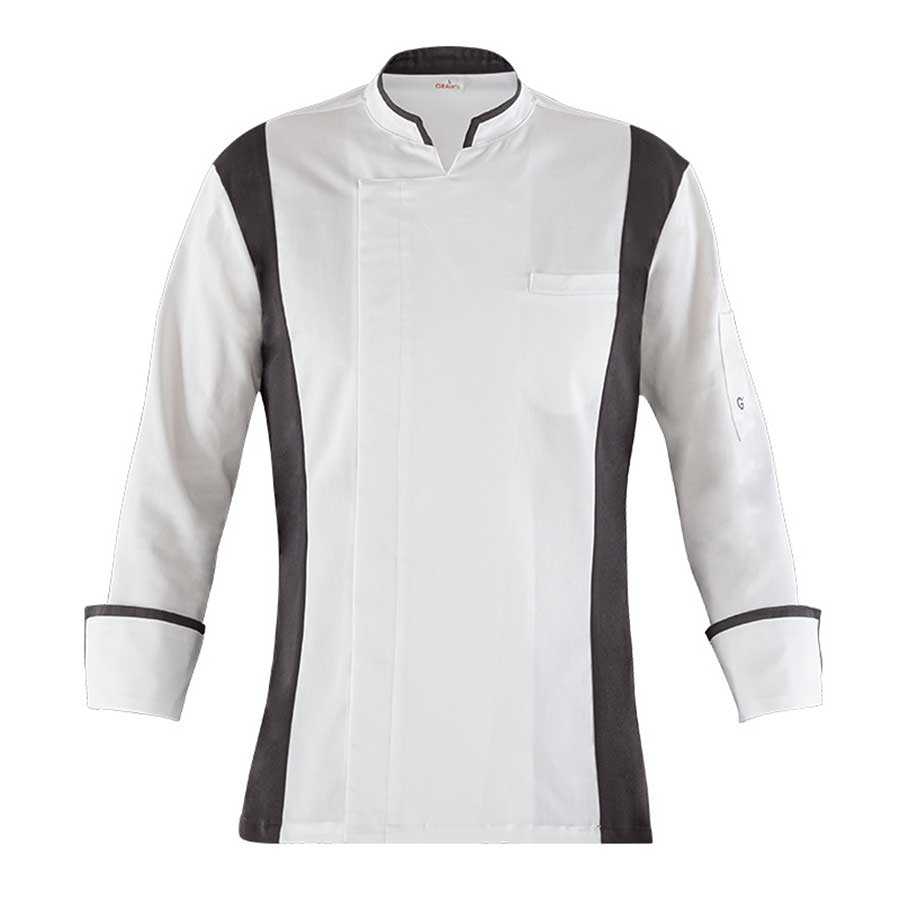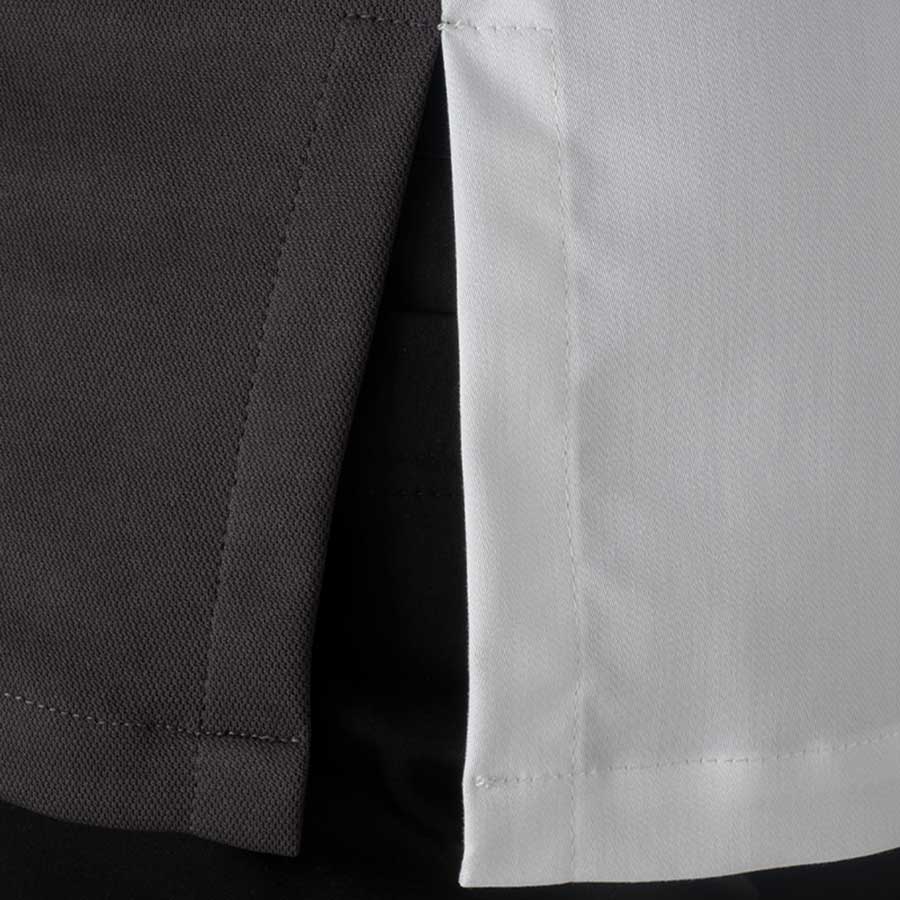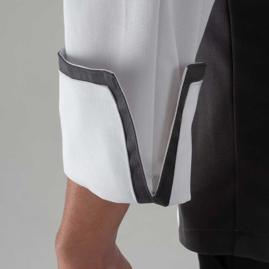 La giacca Alec dal design francese presenta una linea geometrica, con vestibilità Slim Fit. La parte del corpo centrale è realizzata in tessuto raso stretch, mentre i fianchetti laterali sia nel fronte che nel retro sono in morbida maglia di piquet, a contrasto nella variante bianca e in tinta nella variante nera. La giacca Alec è estremamente traspirante e confortevole ed assicura una grande libertà nei movimenti. Il collo ed i polsi sono caratterizzati da elementi a contrasto per esaltare la geometria del capo, mentre l’abbottonatura con bottoni a pressione in metallo è nascosta. Stiro facile.