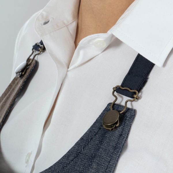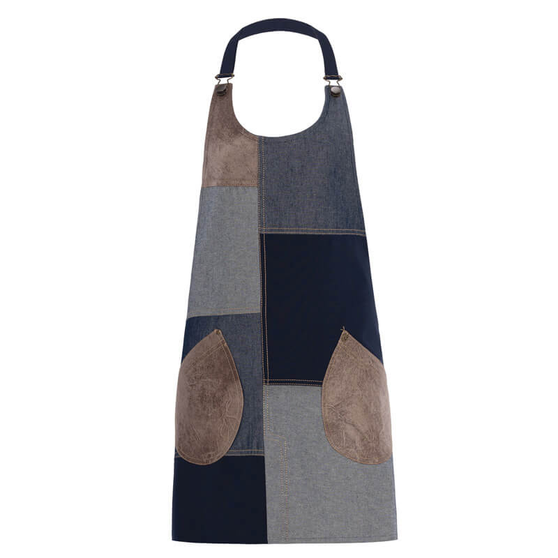 Stile sorprendente per questi grembiuli in denim patchwork blue, sia nella versione uomo che in quella donna. Il tessuto denim usato al rovescio, abbinato a inserti e tasche in alcantara, gli conferiscono un aspetto autentico e contemporaneo. Le cuciture a contrasto e la metalleria in ottone invecchiato illuminano e rendono il capo davvero ricercato. Tipica l’allacciatura salopette con tracolla regolabile.